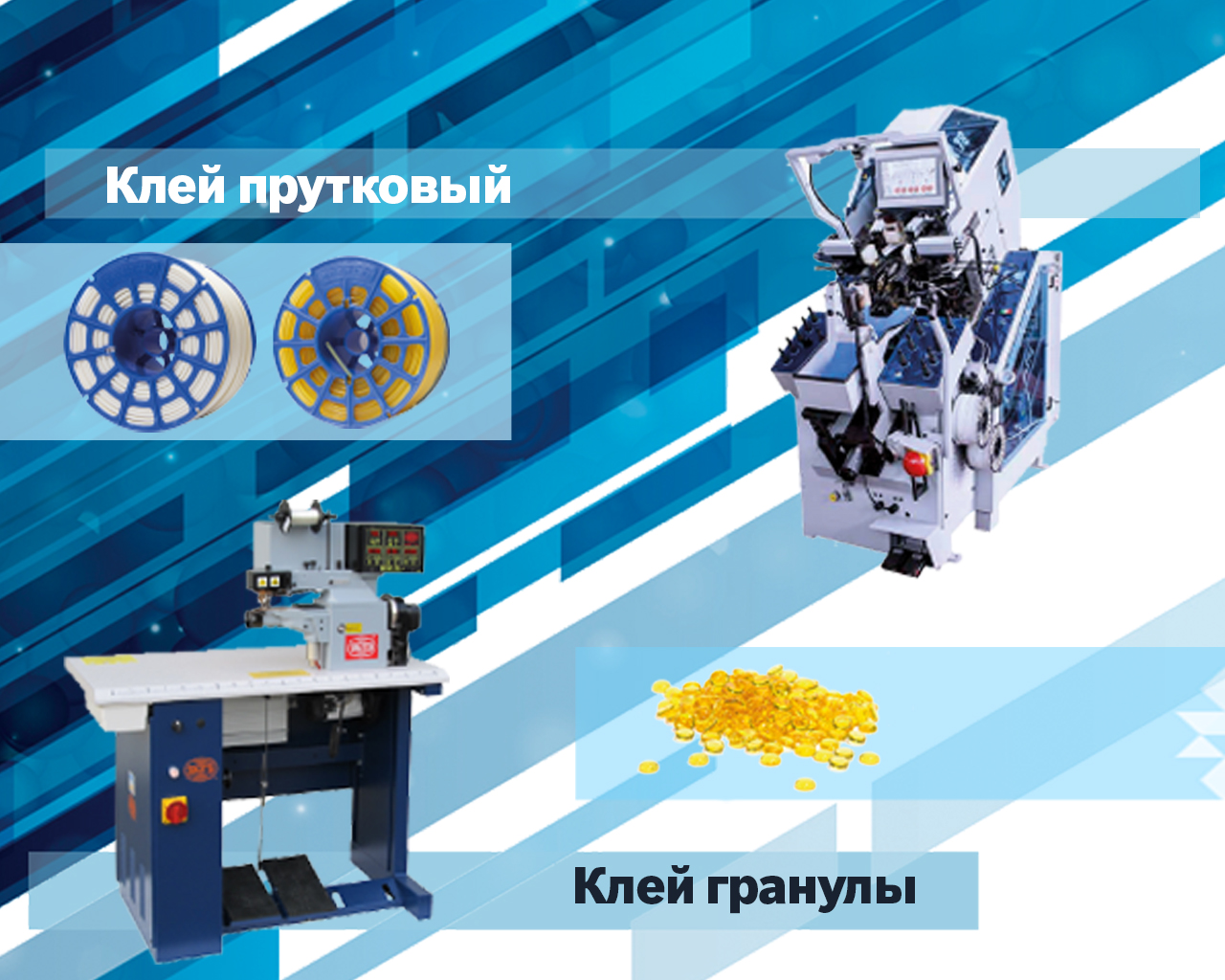 Для затяжки обуви в автоматических машинах. Это прутковые клея, гранулированные и клей в брусках. Используются для затяжки и проклейки на специальном оборудовании. Компания Zotti продает такое оборудование и всегда готова проконсультировать по этим клеям и как их использовать. На нашем сайте представлен ассортимент различных клеев для обувной и галантерейной промышленности, вы можете детально ознакомиться с характеристиками, а если возникают вопросы – наши менеджеры всегда готовы проконсультировать и дать дельный совет.
